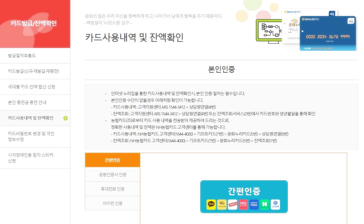 문화누리카드 잔액조회와 충전금액